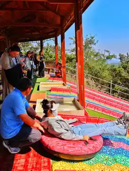 The rainbow slide is very exciting. It is one of the popular entertainment projects in the scenic area. The colorful rainbow looks very good. The whole body seems to pass through the rainbow, and the wind and screams are in the ears, which is as exciting as it is!