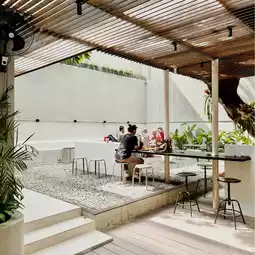 There are several areas, from indoor non smoking with a bar, indoor smoking and outdoor at the back. The facilities are also complete, for WFC it's comfortable because the WiFi is fast and there are plugs in every corner. The prayer room was not left behind either.
