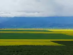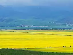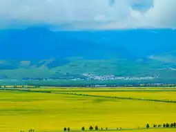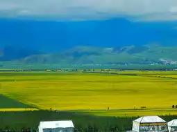 Menyuan Rapeseed Flower Sea is not only a magnificent natural wonder but also a place rich in cultural charm. Due to time constraints, I couldn't frolic in the flower fields and had to settle for admiring the view from the platform—a bit of a regret. The golden rapeseed flowers, set against the green mountains, blue sky, and white clouds, create a scene straight out of a painting.