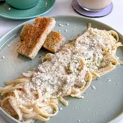 The design of this shop is very aesthetic. I love the vibe it's very peaceful and relaxing. You will relax because of the color and interior of this shop. They also have a very delicious drink, like this one. The oreo milkshake, the sweetness is very to my liking. With their cheese sticks you won't also be disappoint, it has a lot of cheese and it goes well with their sauce. They also have a fast service and very accommodating staffs.