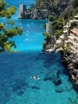 📍Marina Piccola Beach: Bask in the Mediterranean sun during the afternoon—the water is as clear as jelly