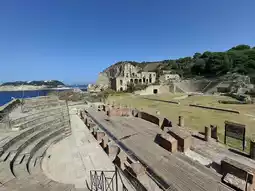 Inside the park you’ll find the remains of the lavish 1st-century BCE villa of Vedius Pollio (also called Villa Pausilypon), featuring a large hillside theatre (~2,000 seats), an odeion (small covered performance space), nymphaeum, fish-pond port complex and gardens that once extended to the sea.  The name “Pausilypon” itself means “place which ends sorrow” — a reflection of its ancient purpose as a retreat of peace and luxury.