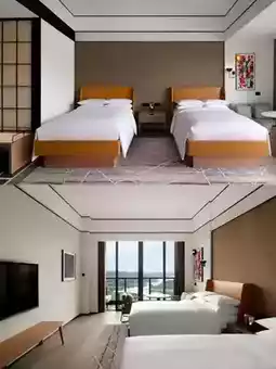 There are 342 guest rooms in total, most of which have lake views. There are also height-adjustable desks in the rooms, and the bathroom space is separated into dry and wet areas, with special Gilchrist&Soames toiletries.