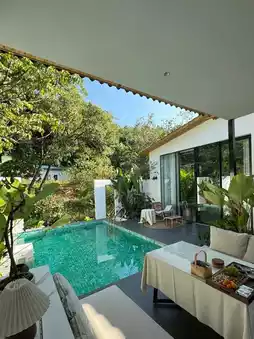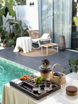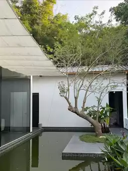 There is a swimming pool in the courtyard, and you can play in the water in summer. The room also has a projector, and you can watch movies at night