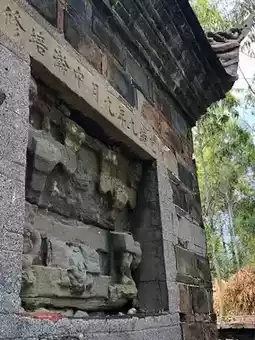 Located in Sanhe Village, Huangxu Town, Jingyang District, Deyang City😄, it covers an area of 54 square meters👏. Inside is a Han Dynasty stone que😃, and outside is a Qing Dynasty brick niche🤓. It is 2.8 meters long😁, 1.55 meters wide😆, and 5 meters tall🥳. The sunny side is engraved with the clerical script 'Shangyong Long'😉, while the shady side is carved with tiger head spouts🦁, dougong brackets😛, and deep relief sculptures of weight-bearing warriors👍.