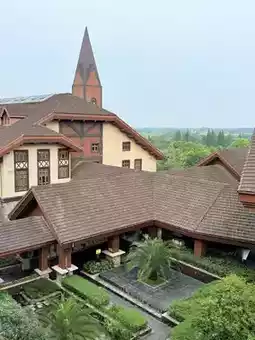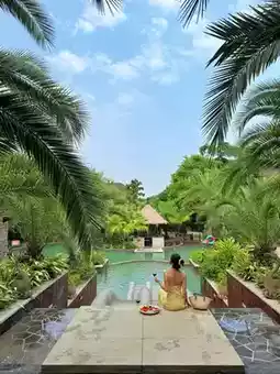 The architecture has full Southeast Asian vibes!! Surrounded by lush greenery, it feels like stepping into a natural oxygen bar! The rooms are spacious with great views – ideal for summer escape!