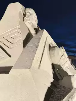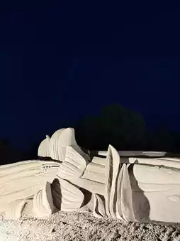 Upon entering the park, the first thing that catches your eye is the massive main sculpture, 70 meters long and 5 meters high. Its delicate texture gleams golden in the sunlight, interwoven with images of flowers, stars, and doves of peace, conveying themes of sustainability and peace. Standing before the sand sculptures, you can sense how the artist, with each grain of sand, has crafted a magnificent yet delicate story.