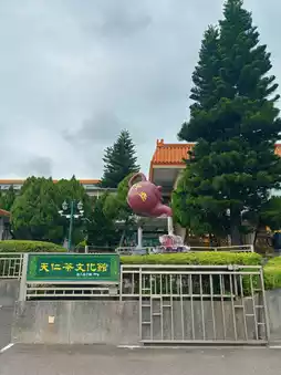 Upon arrival, the first thing that caught my eye was the oversized teapot installation. Tea cascaded from the spout, inviting visitors into a world of tea fragrance. The building's exterior exudes a classic charm, and the orange-red roof tiles stand out against the blue sky, making me snap a few photos before even entering.
