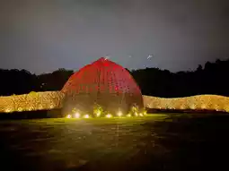 With open-air long tables for dinner, glowing domes, and vibrant light installations,