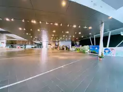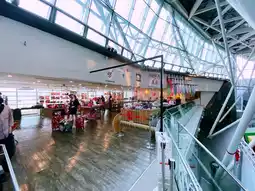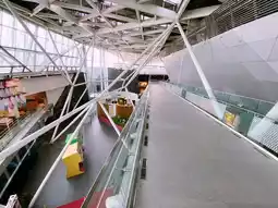 The large expanses of glass reflect the blue sky and white clouds, making it a perfect place for photos and strolls.
