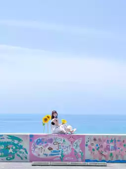 Endless blue ocean, blue summer skies, and murals