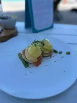 One of the attractions of Compass Bar is the view that makes it seem as if the pool and the sea are one. At sunset, the sky turns orange and pink, and the colors are reflected on the surface of the pool. The time spent relaxing and enjoying a cocktail while watching the view was truly luxurious.