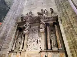The stained glass of Milan Cathedral was mainly created from the 15th to 16th centuries, and depicts stories from the Bible with delicate use of color. In particular, the huge stained glass in the apse (behind the altar) is a masterpiece. The glass, which is over 20 meters high, depicts episodes from the Old and New Testaments in detail, speaking to you like a painting.