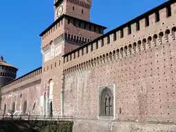 The Sforzesco Castle, towering over the center of Milan, is a fortress built in the 15th century and was once the residence of the Sforza family.