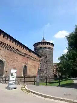 Castel Sforzesco is a fortress built by the Visconti family, the ruling family of Milan. It was remodeled and expanded by Duke Sforza in 1450, and the Sforza family ruled Milan from the 15th to 16th centuries.