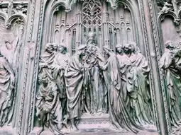 Although some areas of the exterior are still undergoing repairs, the Duomo di Milano, its towering, magnificent Gothic architecture, is a breathtaking sight. There's a metro station right next to the Duomo, so beware of pickpockets. The Duomo is constructed of white marble, with endless spires. The exterior, including the main entrance, middle entrance, side entrances, and walls, is intricately carved, depicting Catholic history. A careful observation from the outside reveals this religious, cultural, and artistic building. Visitors can pay to enter, and purchasing tickets online is convenient. However, be sure to reserve a time slot, as early mornings are less crowded.