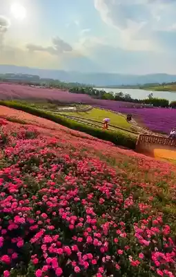 There is also a railway in the flower sea, engraved with 'I love you' in different languages.