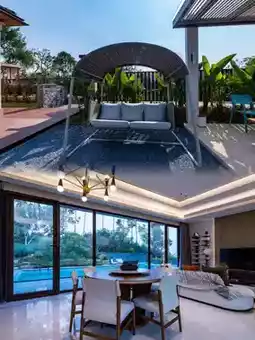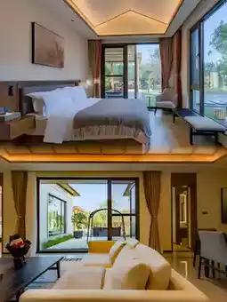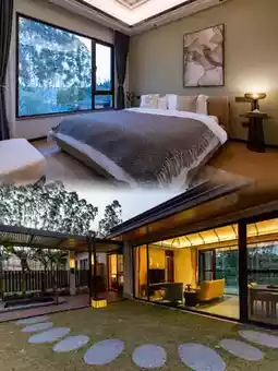 Located in the beautiful Lake Spring Ecological Park, the hotel is surrounded by lush trees and clear lakes, making it feel like a paradise. The design combines traditional and modern elements, with various plants as decoration, making it feel like an art gallery.