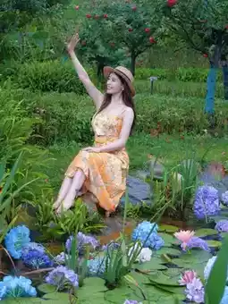Creative art installations are everywhere in the park! The "Princess Taiping" and "Daughter of the Earth" sculptures bring a strong artistic vibe, making every pose look high-end!