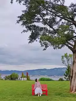 After shooting "Flowers All the Way," walk down a bit to the big lawn, there’s a very photogenic tree with a red chair 🪑 (Did you know? I came just for this tree)! The viewing platform is the best spot to shoot the panoramic view of "Princess Taiping," don’t miss it!