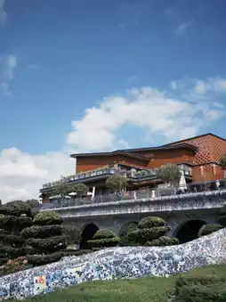 Exclusive hotel perk! You can capture panoramic views of both the buildings and flower fields