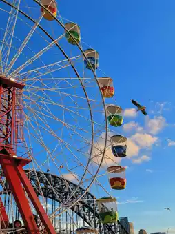 There are many exciting rides, and if you're looking for a relaxing stroll or a photo opportunity, the view is stunning. You can even see both the Harbour Bridge and the Opera House.