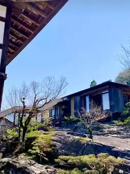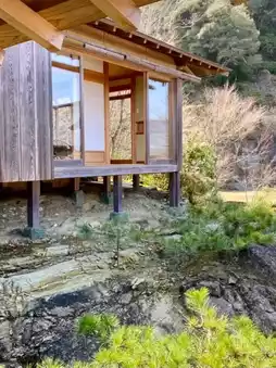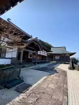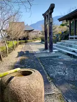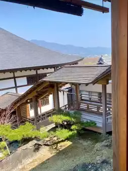 Honrakuji Temple is located on a steep slope, right next to the Yoshino River.
