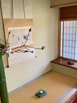 At Honrakuji Temple in Mima City, you can see a dry landscape garden that looks as if it is floating on the surface of the river, with the great Yoshino River in the background.