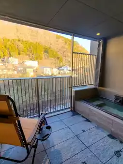 All rooms have a balcony with a river view and an open-air hot spring bath, making it extremely comfortable.