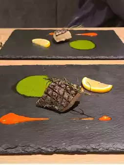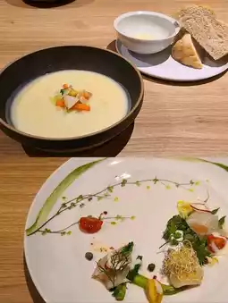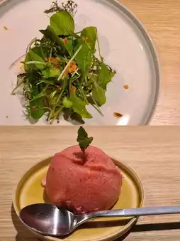 Dinner is a slightly course-style meal that is visually beautiful and can be enjoyed in a casual manner.