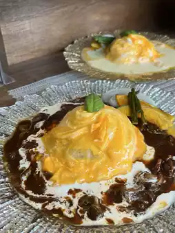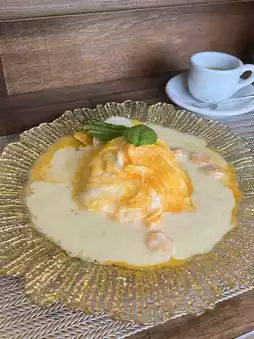 A rare treat was the squid and mentaiko omelette rice, made with mentaiko, a specialty of Hakata. It was just the right amount of salty and very delicious. Every omelette rice was served with grilled vegetables, so you could enjoy the sweetness of the vegetables. For dessert, we had ice cream and pudding. Both were very delicious. Thank you for the meal. #FukuokaTrip #FukuokaCafe #FukuokaCafeHop #FukuokaGourmet #FukuokaSweets #Sakura2024 #FukuokaLunch