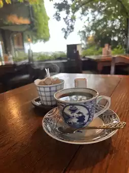 The coffee is brewed with a siphon, so just looking at it is enchanting.