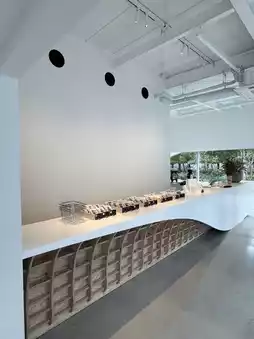 Cs Somme Cafe is a stylish cafe with a pure white space designed by architect Kengo Kuma.