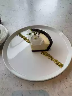Hokkaido baked cheesecake 750 yen A rich and delicious cheesecake! If you eat it with the pistachios on the plate, the pistachios will add an accent and make it even more delicious