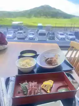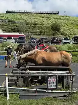 To the left, you can spot Mount Aso, an active volcano. On the day I visited, there was an eruption warning, so we couldn’t get closer. But honestly, just seeing it from afar was already so impressive! It’s the perfect place to relax, unwind, and give your tired mind a little break. 🫶