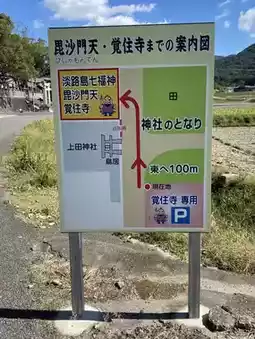 Founded in 859 and established in 1199 by Shimada Totomi no Kami Sakonnoshin, this historic shrine is said to have been dedicated to Hachiman Daigongen, a war god. It is said to grant blessings for traffic safety, health, and the fulfillment of wishes. Incidentally, next to Ueda Hachiman Shrine is Kakujuji Temple, which enshrines Bishamonten, one of the Seven Lucky Gods of Awaji Island.