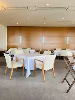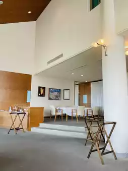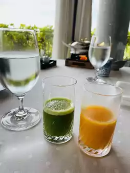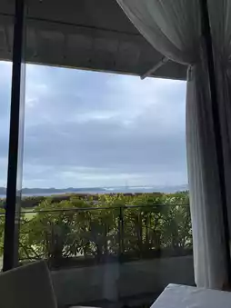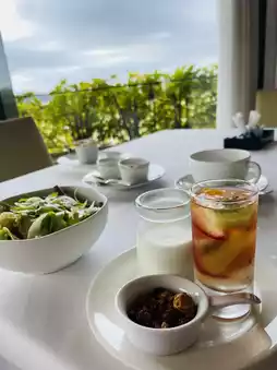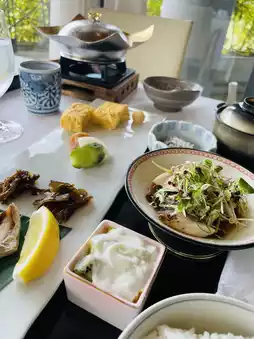This is an adult inn located on a hill overlooking the Naruto Strait at the southwestern tip of Awaji Island. Pets are allowed to stay with only three groups per day (Doggy Villa). It is also known as a gourmet inn, so this time we had breakfast. (The plan called for a room charge, but breakfast could be added by applying by 5:00 p.m. the day before). Please note that pets will be left alone in the rooms. The restaurant in the main building offered a beautiful view of the Naruto Strait Bridge. Breakfast was delicious.