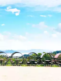 "Uzushio Roadside Station" is undergoing renovation work for about two years (scheduled for completion in March 2025), so it is temporarily open at Uzumachi Terrace on the hill. You can't see the whirlpools up close, but the panoramic view of the Naruto Strait and the Naruto Kaikyo Bridge is spectacular. The Otama Chair, a very popular photo spot on Awaji Island, is also set up here. Facility name: Uzushio Roadside Station in Uzumachi Terrace