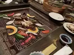We had dinner around the hearth! Lots of seafood, meat, vegetables, etc. At the end, we were served grilled rice balls, which were very delicious! The portions were also voluminous and I was full to the brim. I was able to enjoy Japanese food and the Japanese atmosphere.