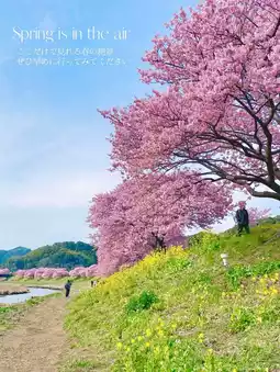 This place is said to be "the place where you can feel spring the earliest in Honshu", and 800 Kawazu cherry trees bloom along the 2km stretch of the Aono River, and at the same time, rape blossoms bloom all over the bank. It is a spot where you can see a truly beautiful contrast of pink and yellow! 🥹✨🌸