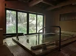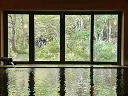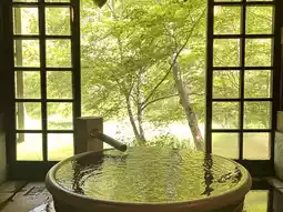 What's great about it is that you can enjoy the view of greenery while bathing in the large public bath.