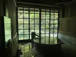 The hot spring in your room is also close to greenery, and the sound of the babbling river and the chirping of birds serves as background music.