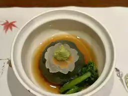 The dumpling soup at Yamamizuki is impressively served in a large pot.