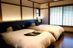 A cottage is divided into two rooms, occupies a super large area, and the space is very well planned. The Japanese and Western-style rooms, plus the Japanese-style living room, are very comfortable. The room features an oversized private bath and is surrounded by a separate Japanese garden throughout for extreme privacy. You can also take a walk in the garden and enjoy a cup of coffee in the morning while enjoying the river scenery.