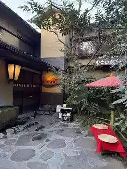 The courtyard of the ryokan? There is a hearth and a foot bath where you can relax