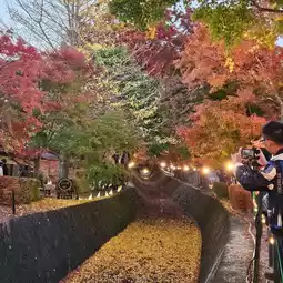 Can't get enough of the view of autumn leaves and Mt Fuji at the Momiji Corridor. Lights up from sunset until 10pm.
