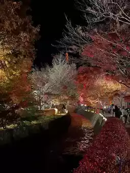 It's recommended because there are fewer people at night🐈⬛ ͗ ͗〰︎︎❤︎However, it gets cold around Lake Kawaguchi during the autumn leaves season, so it's a good idea to take measures against the cold💡⠜