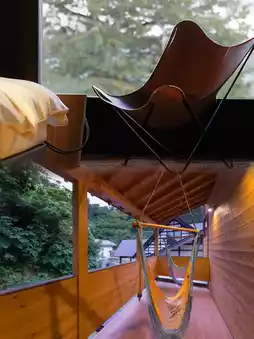 Nestled among mountains, Rishan Shitie Hotel welcomes you with fresh air filled with the unique fragrance of grass, wood, and soil. Following the winding path, you'll discover Japanese-style wooden houses perfectly integrated with the surrounding forests and streams. In the morning, sunlight filters through the leaves onto the rooftops while birds sing in the branches. At night, stars twinkle above as insects orchestrate nature's symphony.