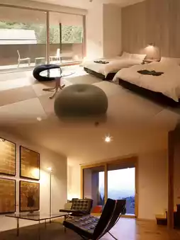 The rooms embrace traditional Japanese style, with comfortable tatami floors. Slide open the paper doors to enjoy seasonal views. The decor is minimalist yet elegant, featuring flower arrangements, ukiyo-e prints, and classic tea sets - every detail reflects the pursuit of living aesthetics. The bathroom features separate wet and dry areas, with natural plant-derived amenities that soothe both body and mind. Worth mentioning is the private viewing terrace with a hot spring pool - soaking in warm spring water while admiring the distant mountains and sea of clouds is pure bliss for the soul.