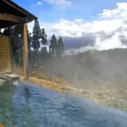 A spectacular open-air bath that won the Good Design Award for Manufacturing Design.